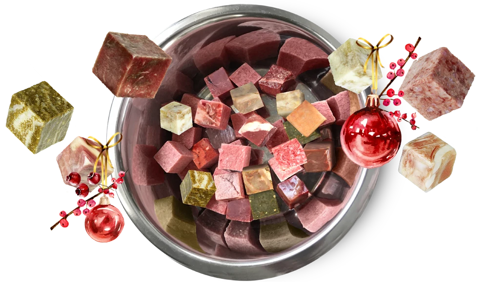 Wir stehen für hochwertige, leicht portionierbare Rohfutterwürfel aus ganzen Stücken geschnitten: